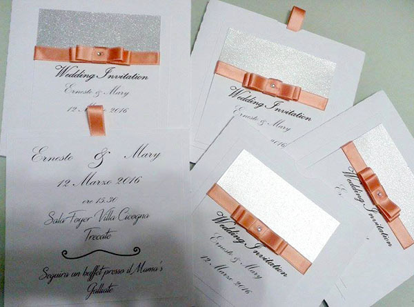 Sul posto, Tania ci ha mostrato come aveva idealizzato le nostre partecipazioni di matrimonio e, assieme, abbiamo modificato i colori, scegliendo quelli che più ci entusiasmavano … e devo dire che questa ragazza è un vulcano d’idee!